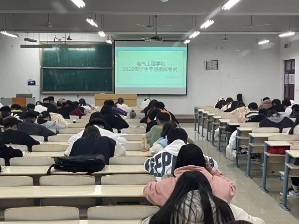为扎实推进校风学风建设,使2022级新生全面学习了解学校各项规章制度,加强教学管理,规范学生行为,增强学生遵守校规校纪的自觉性,促进学生全面发展。电气工程学院于11月10日晚七点在8号教学楼401、402、403、404教室和工科教学楼212教室,组织开展2022级新生学生规章制度模拟考试。我院2022级全体同学均参加了考试。