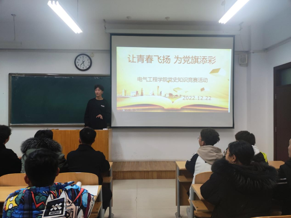 为进一步加强大学生党史学习教育,推动党史学习教育常态化、长效化发展,引导同学们学好百年党史、传承红色基因、提高自身素质。2022年11月22日晚上7点,电气工程学院在8号教学楼403教室开展党史知识竞赛活动,活动由我院学习部主办,22级报名参赛选手参加了此次活动。