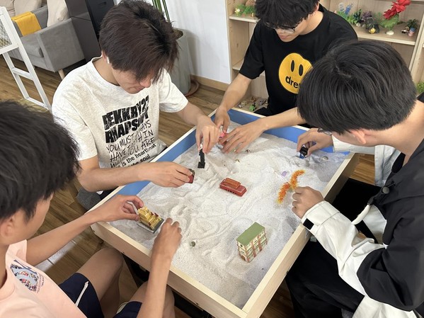 踏入“寓心家园”,柔和灯光与温馨布置缓解了学生的紧张情绪。在放松体验区,按摩椅配合舒缓音乐,有效缓解学生学业疲劳;沙盘游戏区里,学生通过摆弄沙子和模型构建场景,将内心的情感、想法具象化,实现自我认知与探索。一系列趣味横生的游戏,让学生们在欢声笑语中打破隔阂,携手并肩完成挑战。大家在游戏中相互配合、彼此鼓励,不仅提升了团队的凝聚力,更在一次次沟通与协作中,掌握了实用的人际交往技巧,深刻体会到合作与信任的力量。